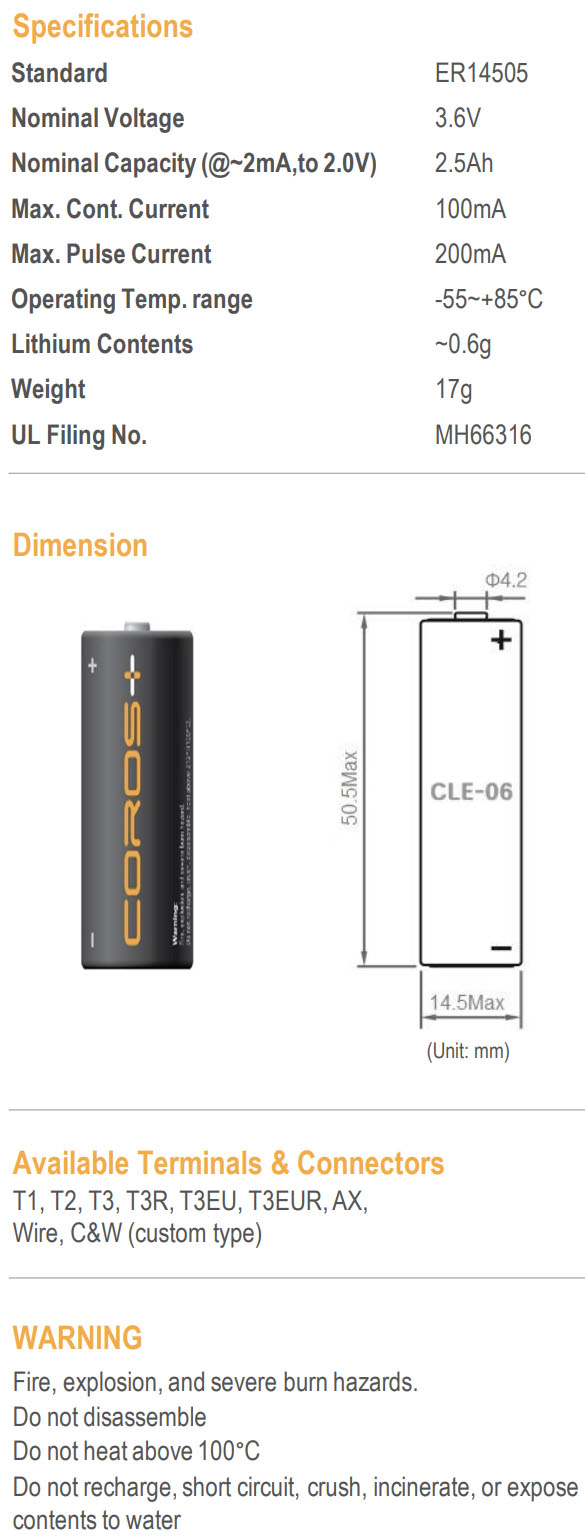 ¡Þ Nominal Voltage : 3.6V