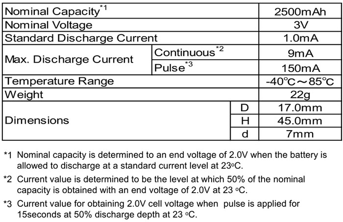 ¡Þ Nominal Voltage : 3V
