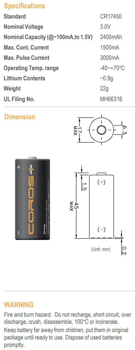 ¡Þ Nominal Voltage : 3V