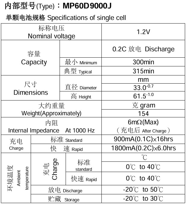 ¡Þ Ambient temperature : (Charge) 0 ~ 40¡É (Discharge)