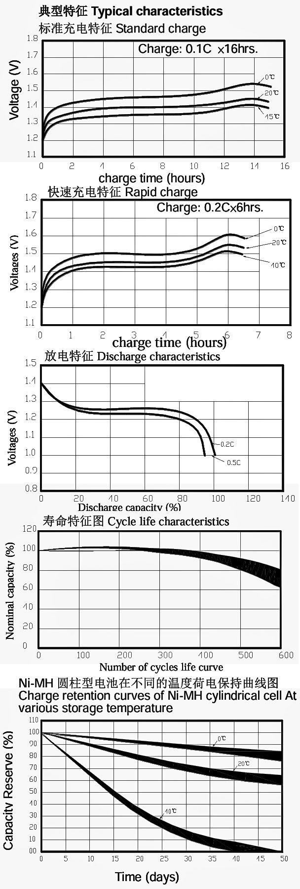 ¡Þ Standard Charge : 1800mA (16 hour)