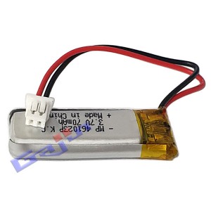 ¤Ñ Ç¥±âÁ¤Á¤ MP461023P ¡æ MP451025P ¡Þ Nominal Capacity : 70 mAh ¡Þ Minimum Capacity : 65 mAh ¡Þ Nominal Voltage : 3.7 V ¡Þ Delivery voltage : 3.7 ~ 3.9 V ¡Þ Charge Voltage : 4.2 V ¡¾ 0.03 V ¡Þ Charge Current : ( 0.2 C ) 13 mA ( 6.5 h ), ( 1 C ) 65 mA ( 2.5 h ) ¡Þ Maximum Charge Current : ( 1.0 C ) 65 mA ¡Þ Peak Discharge Current : ( 2 C ) 130 mA ( Continuous Discharge 1 C ) ¡Þ Operation Temperature : ( Charge ) 0 ~ 45 ¡É, ( Discharge ) -20 ~ 60 ¡É ¡Þ Storage temperature for a long time : -20 ~ 25 ¡É ¡Þ Size : 4.5 x10.2 x26 mm (about) ¡Þ Weight : 2.5 g (about)